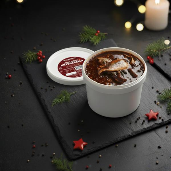 Pouls Kryddersild leveres i spande af 2,5 kg / netto 1,5 kg sild.